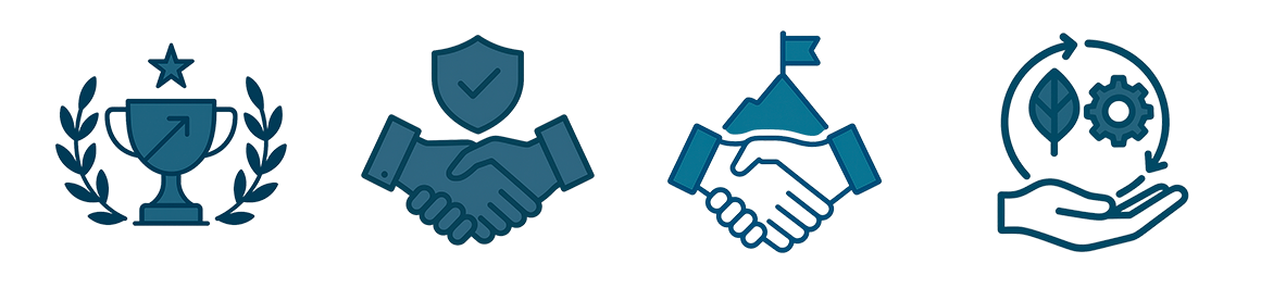 ➠ En visant toujours la perfection dans l’exécution, l’innovation dans nos solutions et la satisfaction durable de ceux qui nous font confiance.